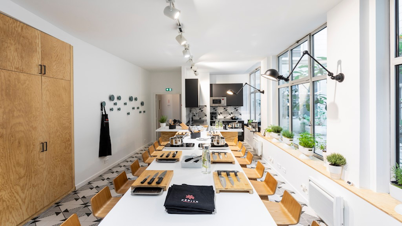 Passez la cour pavée et entrez chez Pépite Paris ! Vous serez immédiatement conquis par l’ambiance chaleureuse, sereine et stimulante qui y règne. D’abord la Meeting Room, un espace de travail convivial et ultra équipé qui permet d’accueillir entre 8 et 35 personnes grâce à sa configuration modulable (gradins rétractables). Pour votre réunion, vous pourrez ainsi utiliser le vidéoprojecteur ou l’écran tactile équipé de la solution Klaxoon permettant de créer de l’interaction avec vos participants. Ensuite, vous pourrez découvrir l’Atelier. De grandes baies vitrées éclairent cet espace disposant d’ilots modulables permettant ainsi d’utiliser les lieux aussi bien pour un repas d’équipe ou que pour organiser des activités de team building. C’est d’ailleurs l’une des spécificités des lieux : Pépite Paris s’est entouré de partenaires talentueux pour organiser des ateliers culinaires, des animations florales, végétales, artistiques (lettering, fresques…) ou ludiques.